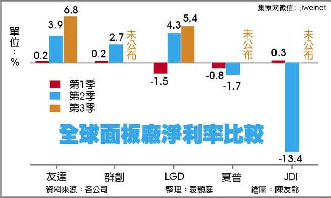 走出金融海嘯以來低潮,友達第3季繳出稅后獲利73億元的亮眼成績。友達今年獲利能力明顯提升,與日韓面板廠相比,友達第3季凈利率達6.8%,一舉超越LGD的5.4%,榮登全球面板獲利王。