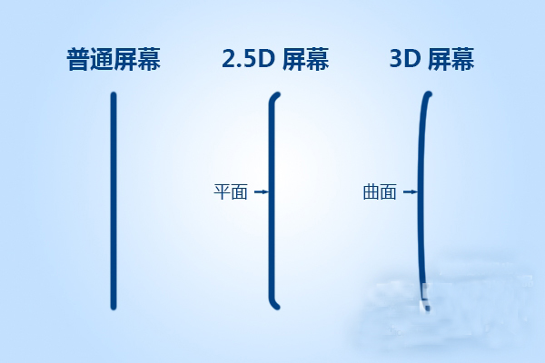 而所謂3D屏幕,則是指那種整個表面都具備弧度、沒有平面的屏幕。除此之外,還有一部分設備自稱采用了2.25D屏幕,這個“2.25D”實際上與2.5D相同,只是叫法上存在區別。