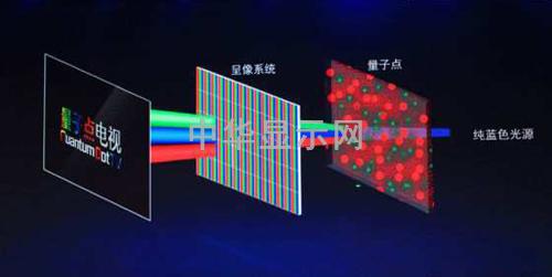 此次TCL推出的量子點電視正是與美國QD Vision公司聯合研發,實現了量子點顯示技術在實際電視產品中的應用。量子點電視的成像原理是,通過純正的藍色背光源照射直徑不同的紅色和綠色量子點,從而形成紅綠藍(RGB)三原色,然后再通過濾光膜等呈像系統和驅動系統形成圖像。