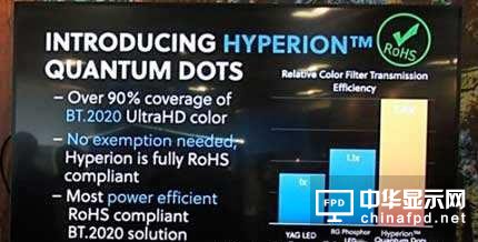 不過,SID 2016的展會上出現了不使用Cd的量子點展示。而且,在此次展會上,量子點陣營為對抗有機EL而發動攻勢的展示也比較多。下面來看一下展區內的演示情況。