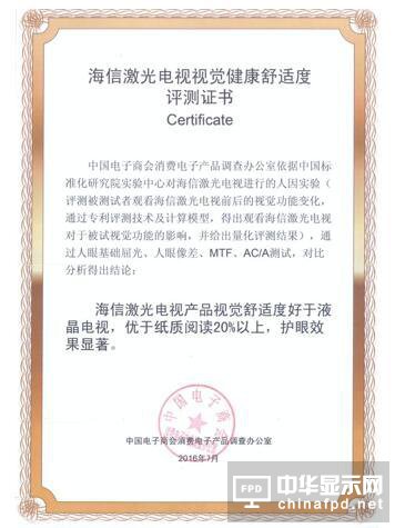 日前,中國標(biāo)準(zhǔn)化研究院還專門針對海信激光電視進(jìn)行了視覺舒適度的專項評測,通過專利評測技術(shù)及計算模型,分析人眼在不同疲勞狀態(tài)下視覺功能參數(shù)的變化情況,最終計算出觀看海信激光電視的視覺舒適度結(jié)果。