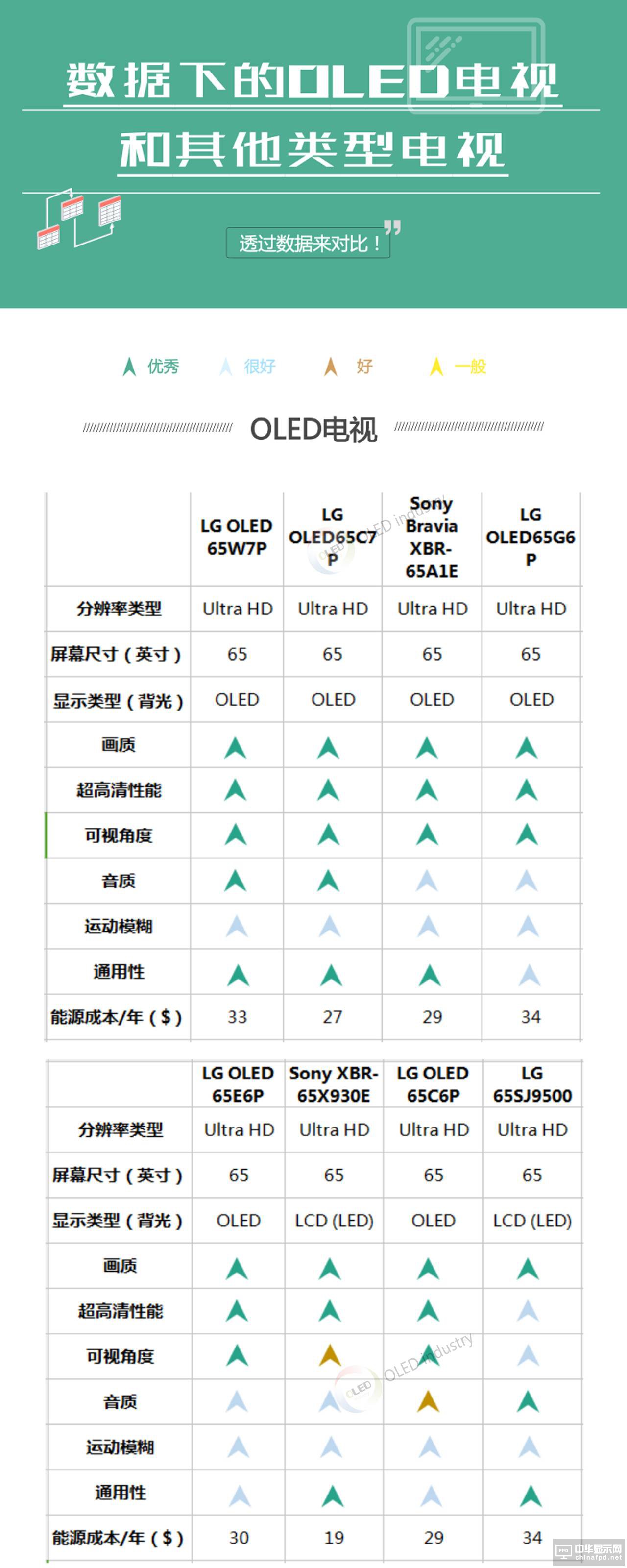 OLED電視目前尚未真正的走入民用市場,因此大家對于OLED電視的認知大部分都源自于新聞報道。今天我們就通過一組評級和測試結果數據來看下OLED電視和其他類型電視的區別!