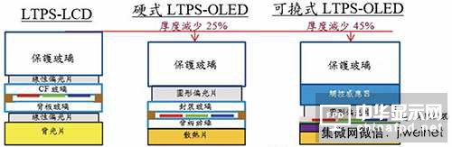 制程不同于LCD OLED顯示器厚度大縮減